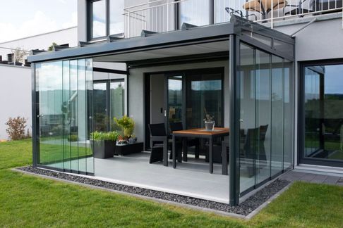Der Übergang vom Terrassendach zum vollständigen Sommergarten ist fließend. Wir passen uns in der Planung genau an Ihre Bedürfnisse an. So kann das Terrassendach mit einem einzelnen, seitlichen Windschutzelement gestaltet werden oder rundherum geschlossen sein. Der Sommergarten bietet Ihnen Lebensraum, verlängert die Terrassensaison und eignet sich hervorragend für das Überwintern von Pflanzen. Wir informieren Sie gerne zur Möglichkeit, Seitenelemente auch nachträglich anzubringen.